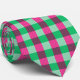 Pink Green Gingham Check Design Neck Tie