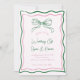 Pink & Green Hand Drawn Retro Bow French Wedding Invitation