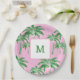 Pink Green Palm Tree Preppy Summer Beach Monogram Paper Plates