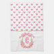 Pink & Green Pickleball Paddle Monogram Crest Kitchen Towel