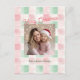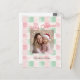 A lovely pink and light green gingham or checked border makes this retro watercolor Christmas card truly special. With delicate coloring of the special winter season, It makes a lovely pastel frame for your own photo on this cute holiday postcard. On the back of this postcard is an example greeting, but you can change all the text or delete it. Be sure to edit the family and personal names that are on the front and back of the card, and also the date.