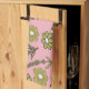 Chic pink and green flower pattern kitchen towel featuring stylish tropical blooms, whimsical botanical motifs, and retro spring summer charm for a fresh nature-inspired accent.