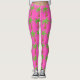 Leggings feature an original marker illustration of a bright green tropical palm tree on a hot pink background.
