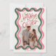 Pink & Green Wavy Frame 2 Photo Christmas Holiday Card