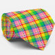 Pink Green Yellow Madras Plaid Design Neck Tie