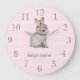 Pink Grey Bunny Baby Boy Nursery Decor Wall Clock