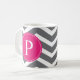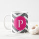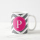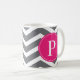 Customise this vibrant pink, grey / gray and white chevron pattern and monogram circle with the name of your choice.