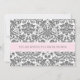 Having your Pink Grey Damask Bridal Shower Invitation match the theme of your party is a great detail that your guests will appreciate. The thoughtfulness of a consistent party theme is often appreciated and can show your guests that you can host a cohesive event.