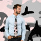 This eye-catching tie features a camouflage pattern in pink, black, light grey and dark grey.. A cool tie to wear for men to wear on during October which is Breast Cancer Awareness Month. Wear some pink to show your support.
