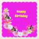 Pictured on pink in a semi circular design are Guinea pigs and flowers with a happy birthday text