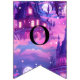 Pink halloween cute magical bewitched cat bunting flags - this is the cutest halloween in pink and purple tones with a spooky mansion, a magical cauldron a bewitched cat and a friendly spider on its spider web. Customize your text and have a wicked fun time at your halloween birthday or bash.