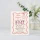 Girly Halloween Party invitation featuring dancing skeletons with a wavy border and bow. Hand drawn style.