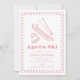 Invite friends and family to warm up after the slopes with this festive Après Ski birthday party invitation. The front design features hand-drawn skis, poles, a cozy beanie, and a playful candy cane—all framed by a curly doodle border in pink against a crisp white background.