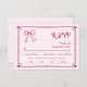 Pink hand drawn bow and border whimsical wedding RSVP card