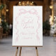 Elegant tie the knot bridal shower welcome sign features hand drawn ribbon bow with modern handwritten script fonts in soft blush pink. sweet and simple. Great for modern romantic wedding, unique fun whimsical wedding, elegant casual wedding.