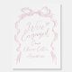 Elegant we are engaged engagement party welcome sign features hand drawn ribbon bow with modern handwritten script fonts in soft blush pink. sweet and simple. Great for modern romantic party, unique fun whimsical wedding, elegant casual engagement party.