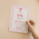 Pink Hand Drawn Bow Gingham Boho Girl Baby Shower Invitation