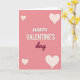 This Valentine's Day card features the words “Happy Valentine’s Day” centered on a soft pink background. “HAPPY VALENTINE’S” appears on top in white, all-caps letters with a simple sans-serif look and a thin inner outline that helps it stand out. Just below it, the word “day” is written in a smooth, flowing burgundy cursive style that adds a warm contrast. Four pale pink hearts with white outlines sit near the corners, with two larger ones at the upper left and lower right and two smaller ones in the other corners. The hearts have slightly uneven outlines and a faint shadow, which gives them a gentle, cozy feel. There aren’t any characters, but the layout feels sweet and friendly, like a quiet note of affection. It’s an easy card to give to a partner, friend, or anyone you care about 💕