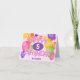 This fun and colorful birthday card for girls features the message, "Happy Birthday" spelled out in realistic, whimsically arranged pink frosted cutout cookies on the front of the card surrounded by multicolor balloons and bunting flags - inside message and child's age and name can be personalized - two balloon-shaped cutout cookies adorn the inside of the card - background is a pattern of small white polka dots on pale pink - by katz_d_zynes