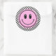 Pink Happy Face Checker Kids Birthday Classic Round Sticker