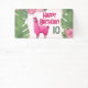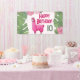 Pink Happy Smiling Lama, this design features a cute and adorable Pink Happy Smiling Lama surrounded by green palm trees and pink tropical flowers.