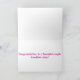 The card was prompt and was delivered as promised. I loved that I could personalize the card with their names. I seriously did not pay attention to the size of the card. I love that it makes a statement. Beautiful! For privacy, I blocked out their names.
