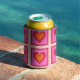 Add a sweet pop of charm to your drinks with this pink heart checkerboard can cooler. Blending colorful retro checks with a modern geometric pattern and playful heart accents, this stylish beverage sleeve is perfect for parties, picnics, or gifting with love. A cute and classic way to stay cool.