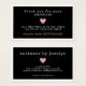 Coupon code cards to slip into the packages you send out to your customers where you can add information about the discount you offer them on their next order. A white border frames the black discount insert card that has a cute pink heart and charming fonts against a black background. On the other side of the package insert card for your small business, add the name of your business and contact info.