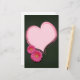 Lovely illustration with a pink painted heart and pink gerbera daisy flowers on an elegant dark background.