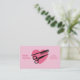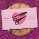 A simple hair stylist business card in pink tones featuring a pair of scissors and a comb over a pink heart. Perfect for hair salon or barber.