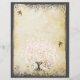 Whimsical Magical Tree of Love Pink Heart Leaf Tree on Tea Stained Warm Silver Toned Metallic Paper with an Overlay of Antique Sheet Music and some cute little swirly designs to enhance the roots of love on this unique woodland wedding invitation...