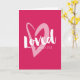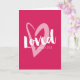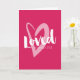 A cute card to give out on Valentine's Day. The design features a hand drawn light pink heart overlaid with "Loved" in white brush lettered font and the scripture reference Jeremiah 31:3 on a fuchsia pink background. The inside quotes the scripture "I have loved you with an everlasting love" in fuchsia pink, and your valentine's message.
