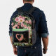 Personalized Pink heart Backpack on a dark black background with shades of green and pink and beautifully crafted pink roses.