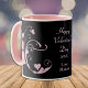 This pretty Valentine's Day mug has a beautiful pink faux glitter heart swirl design against a dramatic black background. The image is printed twice on the mug, with text fields for you to customize at the center. It shows a Valentine's Day greeting, but you may easily change it to anything you'd like. *Please note - the image is printed and contains no actual glitter.