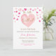 Plain white envelopes are included with paper invitations and will come to fit the invitation size you select. If you don’t need the envelopes, you may choose to not receive them by selecting the dropdown below "Envelopes" and choosing "None." If you’d like to have a design on your envelopes, you can browse all of these available envelopes to find the design that complements your Pink Heart Valentine Baby Shower Invitation.