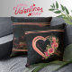 Personalized Pink Heart throw pillow on a dark black background with shades of green and pink and beautifully crafted pink roses.