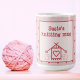 Pink hearts and sheep knitting coffee mug - Makes you feel cozy in an instant and ready to knit. Pour your favorite coffee or tea and get comfortable on your knitting chair. This two toned mug in pink featuring a knitted house with sheep on the side and a heart inside plus lots of hearts in the background will make you feel inspired to knit every day. Personalize this mug with your name or text and make this the perfect present for your arts and crafts friends.