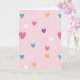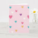 This design shows a repeating pattern of hearts drifting across a light pink background, giving the whole card a sweet, loving feel 💘. The hearts come in teal, hot pink, white, mustard yellow, and deep purple, and they’re spread out evenly with no single heart taking center stage. Each one has a slightly uneven outline and a few simple lines inside, which makes them feel friendly and relaxed. Small white dash marks are sprinkled between the hearts, like little bits of confetti falling through the air ❤️. There isn’t any text on the card, so the heart pattern is the main message all on its own. The overall setting feels like a soft shower of love and good cheer, perfect for romance or close friendship 😘.