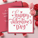 This sweet Valentine's Day card features a pink decorative graphic that says 'Happy Valentine's Day' and is accented by hearts. Personalize by customizing the message on the back and/or adding your name(s).