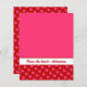 A playful, bright pink heart pattern with a heartfelt, deep, solid red background lines the bottom and back of this 4.5x5.6 paper sheet, featuring a blank, valentine pink writing space. A bright white message strip provides space for your customizable, printed text. Perfect for your personal messages, journaling, and crafting.