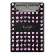 A cute hearts pattern in a pink palette, on a black background. Personalize with a name (to keep the swashes on the name, it is best to enter in lowercase and make sure you keep the emojis at the beginning and end, as shown on the example name).