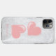Protect your iPhone with a Pink Hearts Personalized iPhone Case. Case design features a pair of hearts resting on a white leafy vine against a gray grunge background with a place to personalize with your name. Additional items available with this design as well. Please contact me directly for assistance with personalization.