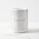 Enjoy your morning coffee with a Pink Hearts Personalized Coffee Mug. Mug design features a a pair of hearts, a soft white leafy vine against a light gray grunge background with an area to personalize with your name. Additional gift items available with this design as well as a variety of colors.