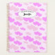 Sweet Planner covered in pink hearts in different sizes on a light pink background on front and back cover. A printed label with Customizable text. Add your name to make it personal. Organize your life and plan your year. A Cute and personal gift.