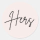 Pink Hers sticker for wedding welcome bag sticker