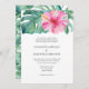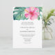 Pink Hibiscus Flow Monstera Leaf Formal Wedding Invitation