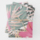 Pink Hibiscus Flowers and Large Tropical Leaves Wrapping Paper Sheets