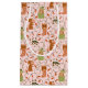 Cute and festive Christmas gift bag featuring hand drawn illustration of cats and dogs with Christmas lights. The background is pink.