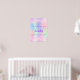 A welcome poster for a girly and glamorous Quinceanera. A trendy holographic colored background in pink, purple, mint green. Decorated with confetti in pink. Personalize and add a name. Purple text.