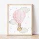 Pink Hot Air Balloon, Animals, Bear, Girl Nursery Photo Print